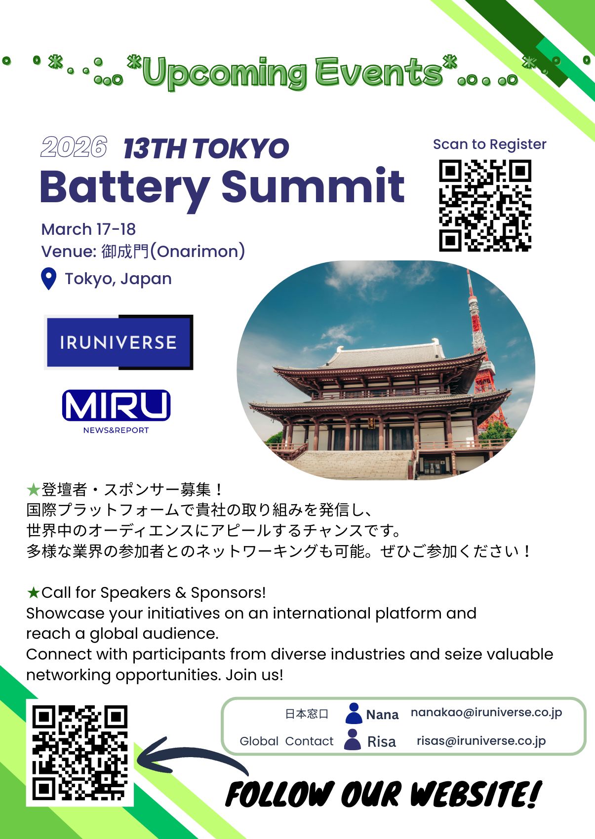 「第13回 Battery Summit in TOKYO 」を開催いたします。